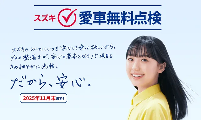 現在、スズキの愛車無料点検を実施中。