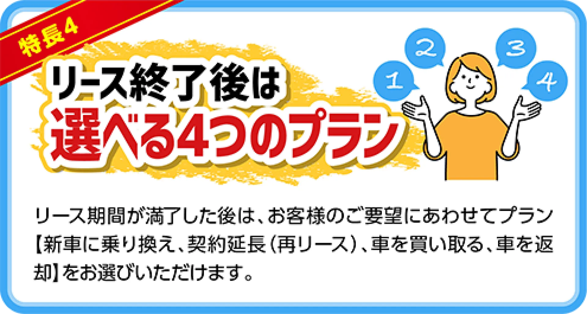 リース満了後は、以下の4つの選択肢から選べます。